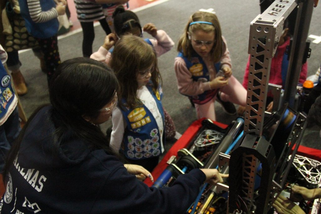 Each year, we build a new robot like this one and use it to compete in FIRST Robotics’ FIRST Robotics Competition (or FRC). Every step of the process, from the designing and machining to the coding and business, is managed by students, leaving every TechKnight with valuable skills that they can carry forward through college and beyond.